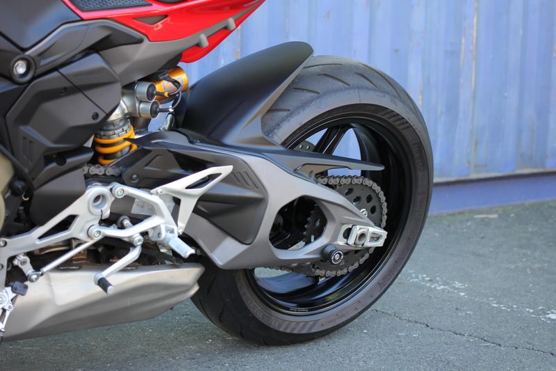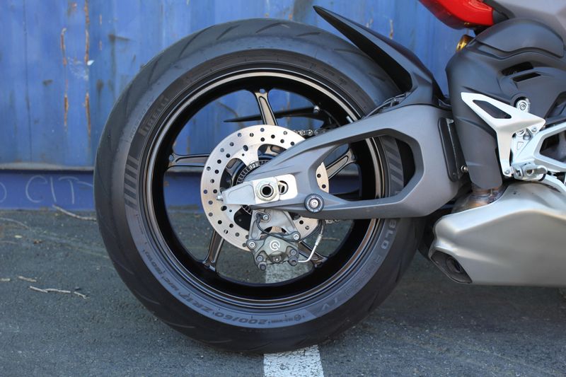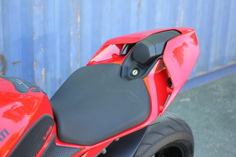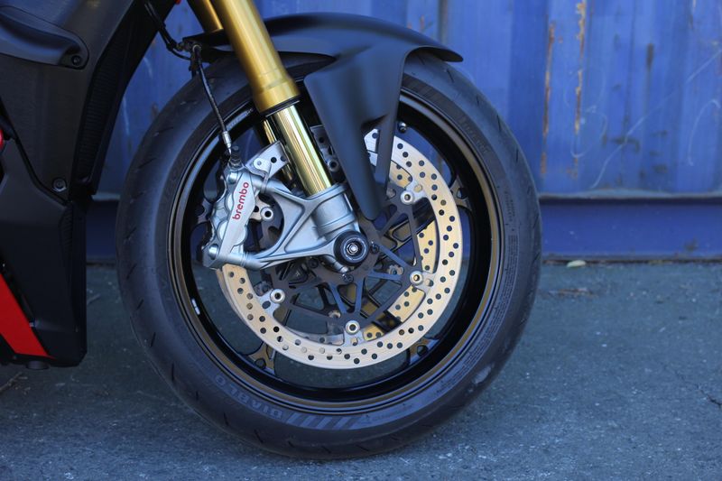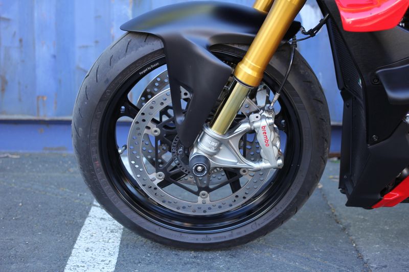 The natural evolution of the family is a bike that pushes the concepts of the "Fight Formula" even further, the key elements of which are the Panigale V4 stripped of the fairings, high and wide handlebars, 392 lb weight, 208 hp Desmosedici Stradale engine, biplane wings and latest generation electronic package.