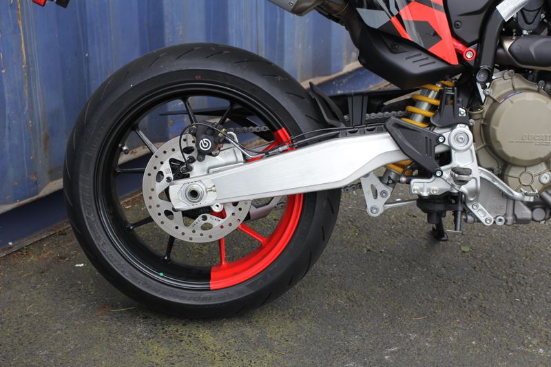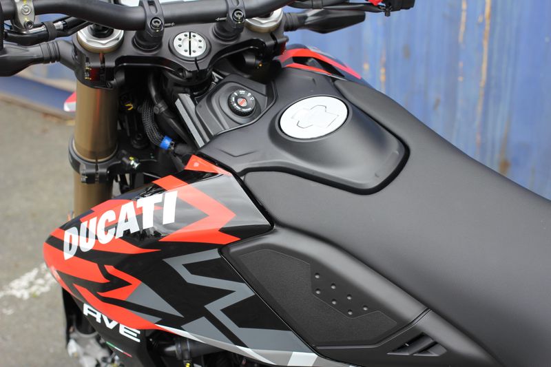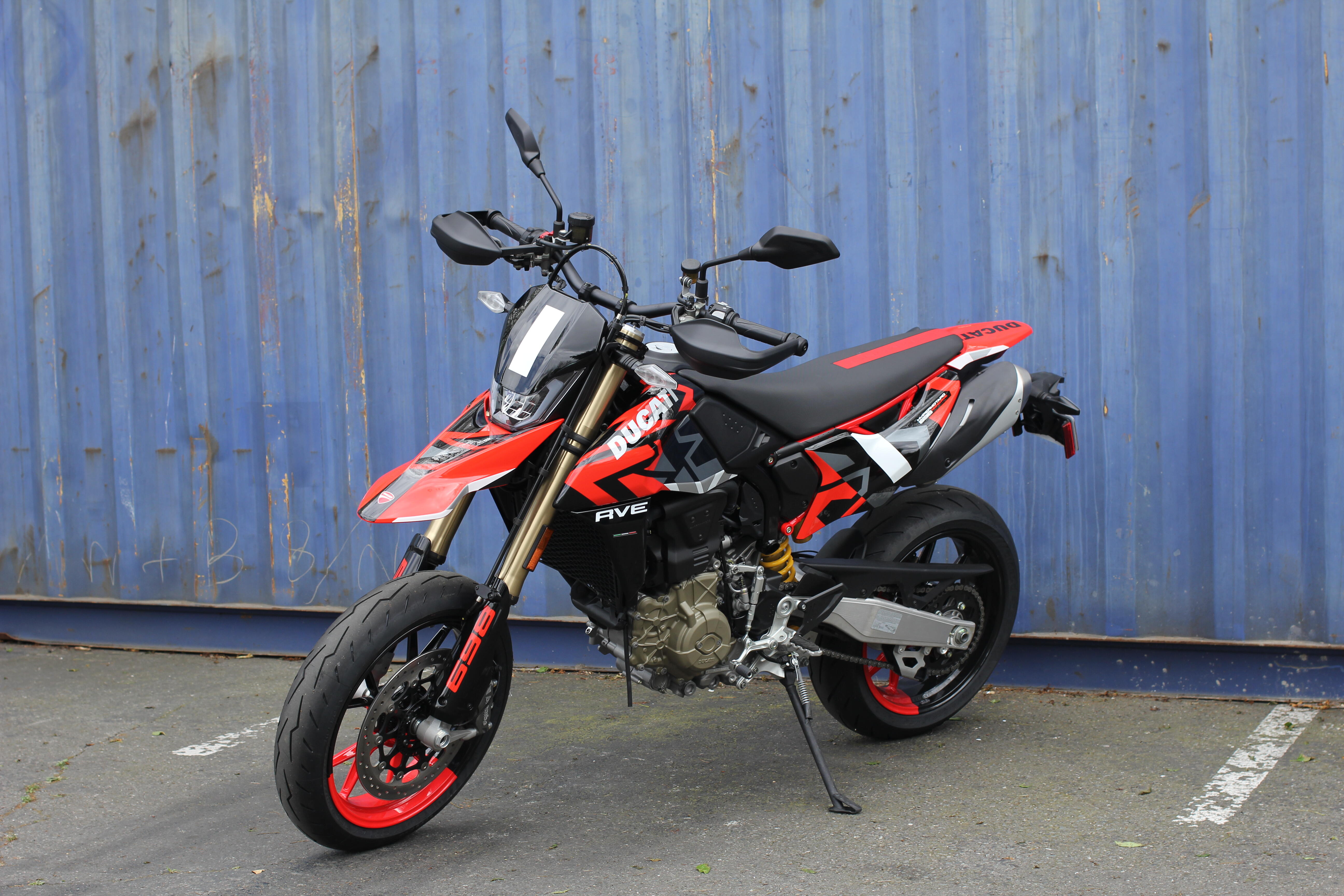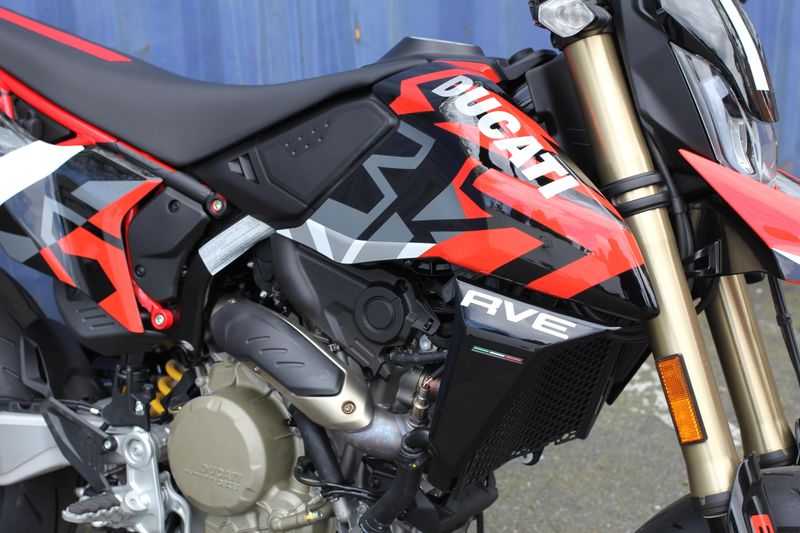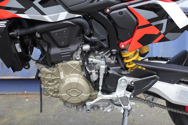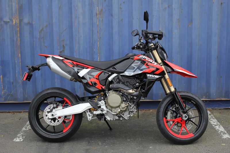 The "Graffiti" livery was created with the use of water-based decals with the aim of obtaining a refined and complex graphic inspired by street art works. The standard version is distinguished by the essentiality of the mass-coloured Ducati Red plastics, typical of the supermotard world.
