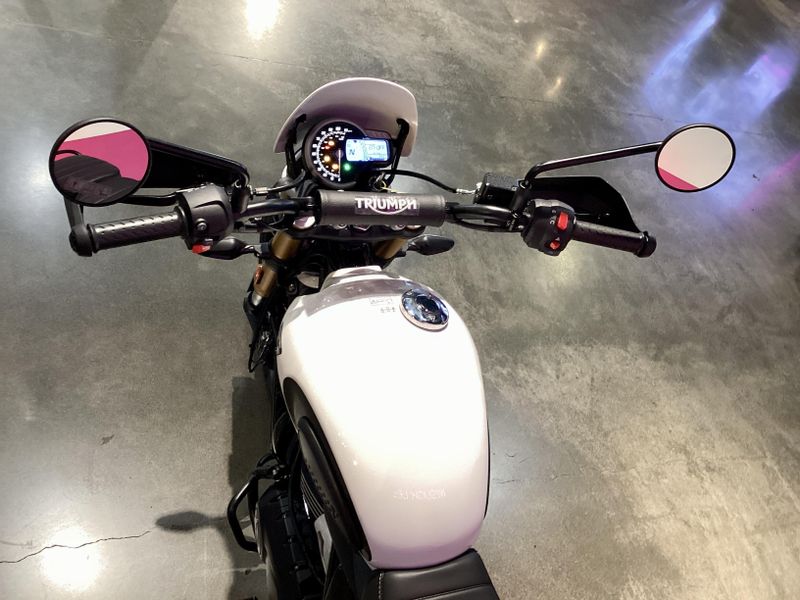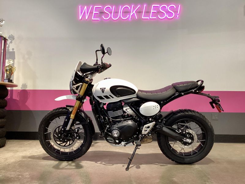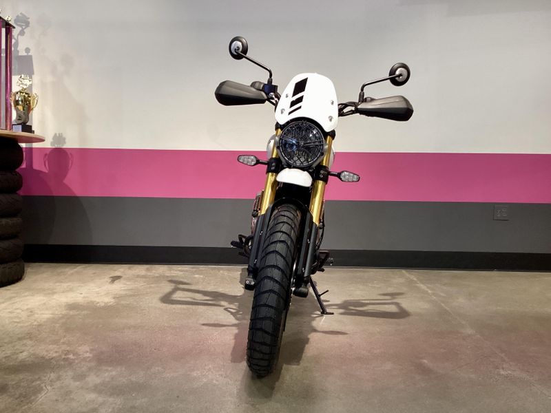 Upright ergonomics, modern ABS/traction control, and bold scrambler styling.