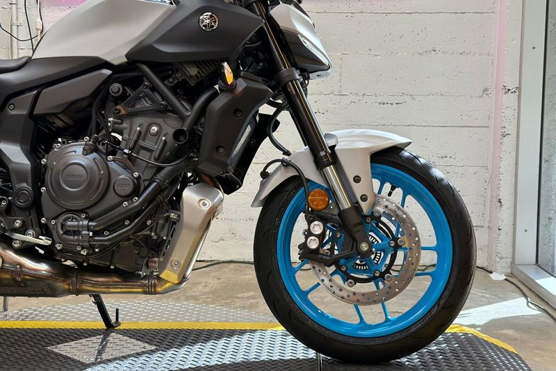 The new 2025 MT-07 is the highest specification yet, including new radially mounted front brake calipers, 41 mm inverted forks, lightweight SpinForged wheels and striking next-generation MT styling.