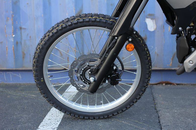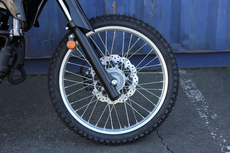 Large 21-inch front wheel and 18-inch rear wheel enhance off-road performance.