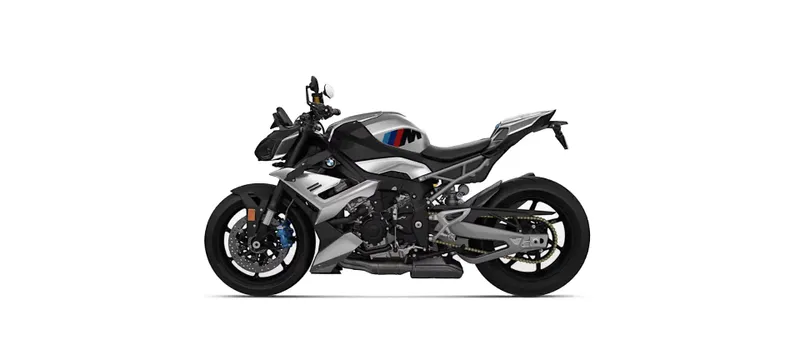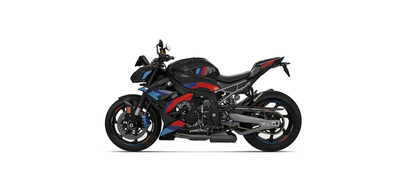 Superbike engine perfected for a hyper roadster: the four-cylinder engine from the RR with BMW ShiftCam technology catapults you from 0 to 60 mph in 3.2 seconds. With a maximum engine speed of 14,600 rpm, the M R is clearly our most powerful roadster. From 10,000 rpm, you can consequently feel more torque and acceleration. In terms of gear ratio, the M R has more to offer compared with the RR: 47 instead of 46 teeth in the secondary gear ratio and a shorter gear ratio in 4th, 5th and 6th gears compared to the S 1000 R – for performance-oriented riding on country roads. Shift assistant Pro enables fast upshifts and downshifts. The bike's rich sound originating from the titanium rear silencer impressively emphasizes this.